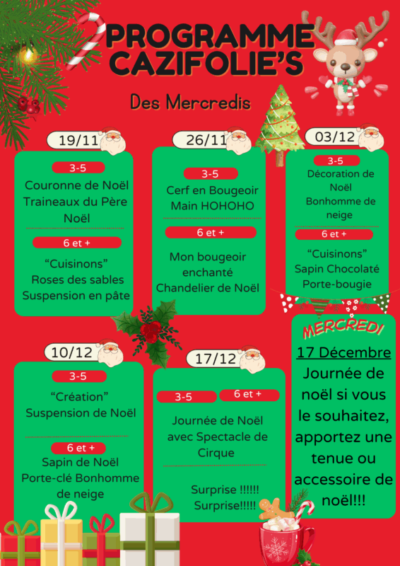 Nos proposerons aux enfants des activités déco et des ateliers cuisine autour du thème.